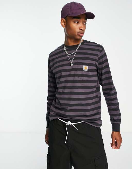 Carhartt WIP – Merrick – Lila randig långärmad topp