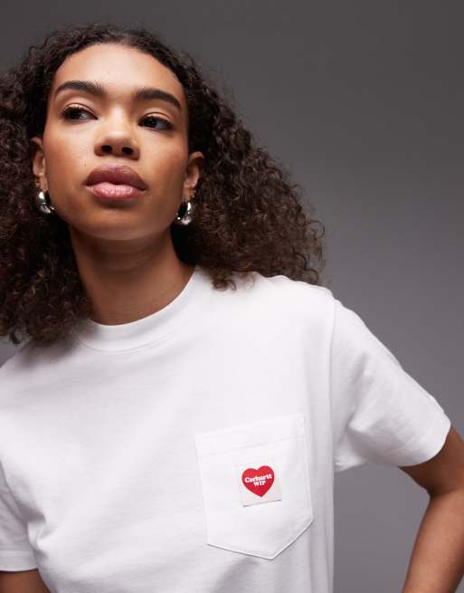 Carhartt WIP – Vit t-shirt med hjärtlogga på fickan