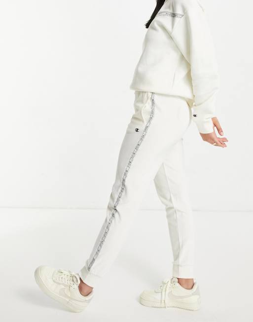 Champion – Gräddvita mjukisbyxor i velour med tejpade detaljer
