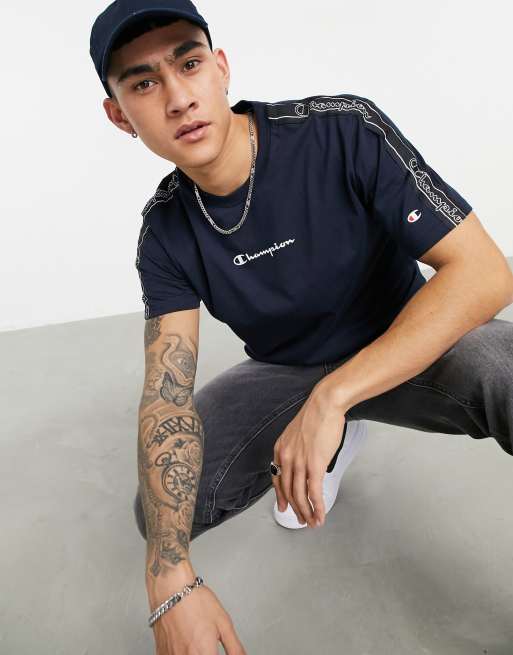Champion – Marinblå t-shirt med tejpade detaljer och textlogga