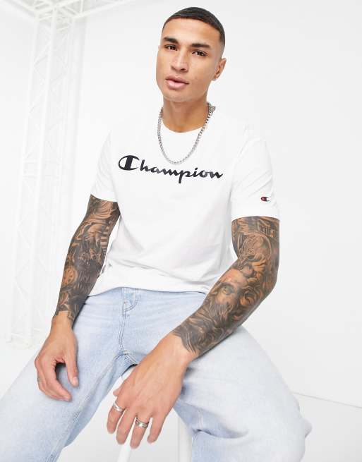 Champion – Vit t-shirt med stor textlogga på bröstet