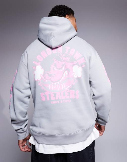 Cheats & Thieves – Grå huvtröja med "London Town"-tryck baktill, 320gsm