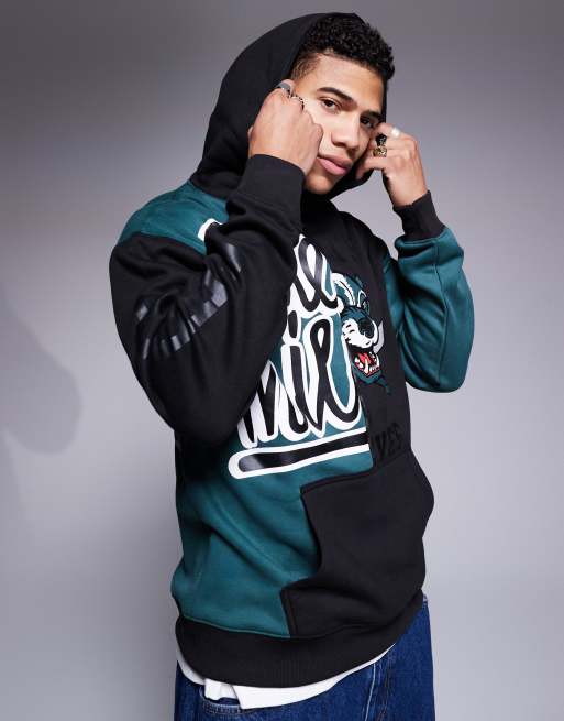 Cheats & Thieves – Heavy Hitters – Grön, svart och blockfärgad huvtröja med delad design och tryck, 320gsm