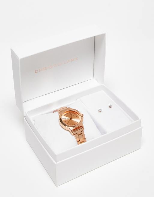 Christian Lars – Roséguldsfärgat gåvoset med klocka och örhängen