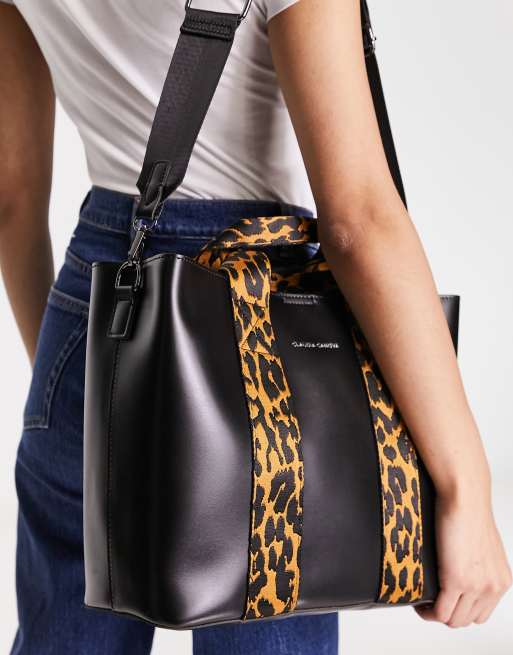 Claudia Canova – Svart toteväska med leopardmönstrad detalj och axelrem