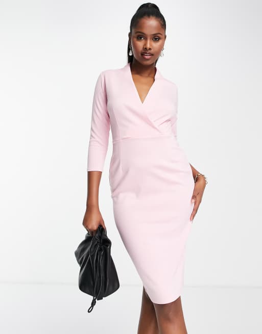 Closet London – Rosa midi-fodralklänning i scubatyg med omlottdesign