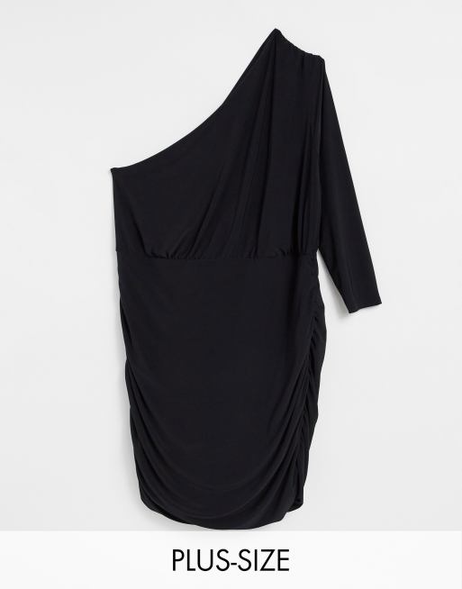 Club L London Plus – Svart enaxlad miniklänning med rynkning