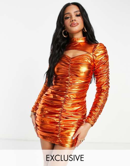 Collective the Label – Orange långärmad miniklänning med utskurna detaljer och paljetter, endast hos ASOS