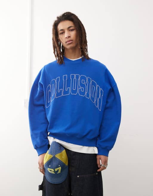 COLLUSION – Blå, boxig sweatshirt med marinblå paneler och broderi