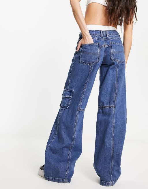 COLLUSION – Blå låga cargojeans i Y2K-stil