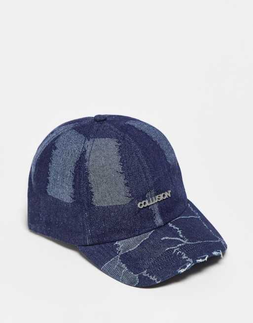 COLLUSION – Blå sliten jeanskeps med lappteknik och unisex-modell