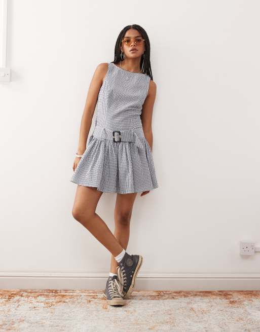 COLLUSION – Blå, strukturerad miniklänning med sänkt midja