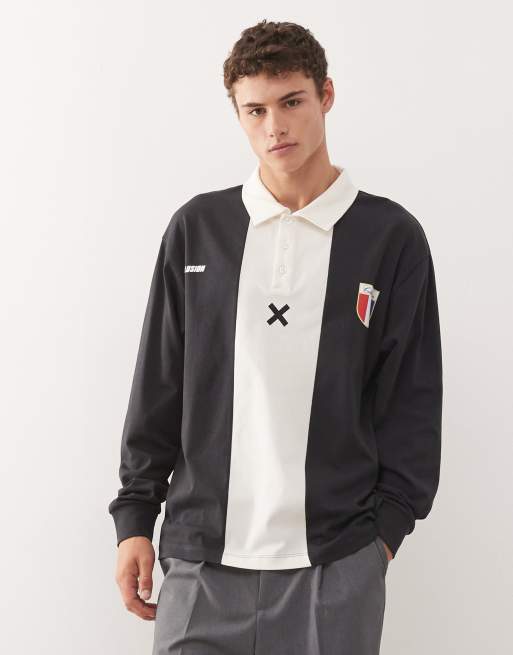 COLLUSION – Blockfärgad, randig rugbytröja med pikékrage och boxig passform