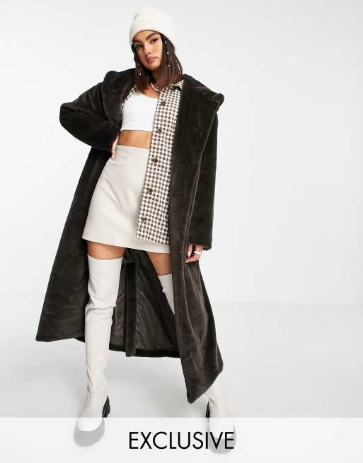 COLLUSION – Brun maxikappa i fuskpäls