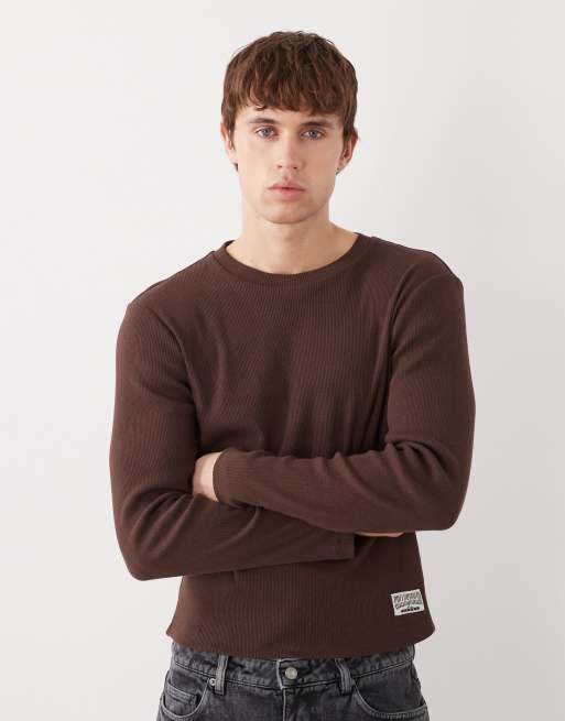 COLLUSION – Brun, ribbad, figurnära topp med långa ärmar
