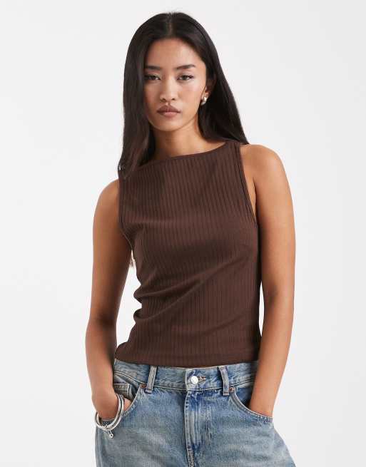 COLLUSION – Chokladbrunt, ribbat linne med båtringning