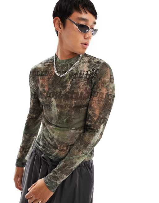 COLLUSION – Flerfärgad, mönstrad t-shirt i mesh med långa ärmar och muscle fit