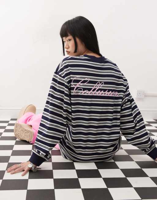 COLLUSION – Flerfärgad, randig och tvättad t-shirt i pikématerial med logga