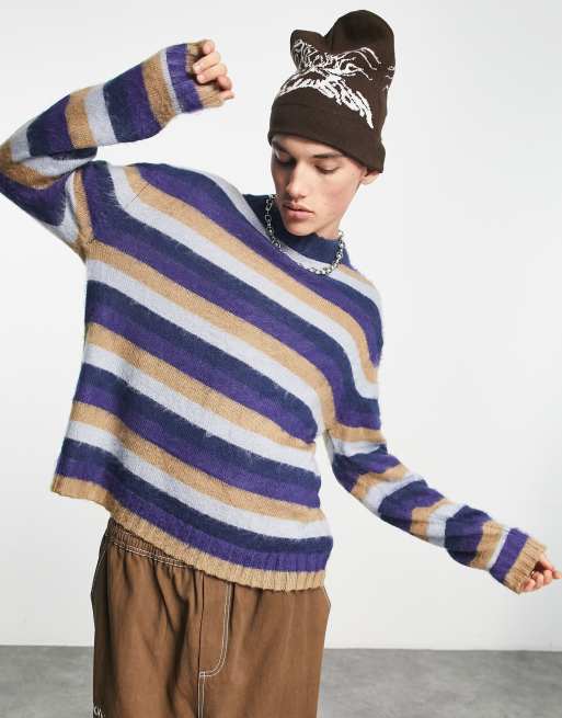 COLLUSION – Flerfärgad stickad tröja med ränder och borstad finish