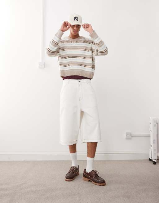 COLLUSION – Gräddvita, baggy jeansshorts med låg midja