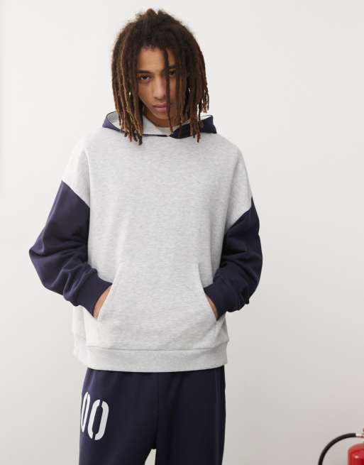 COLLUSION – Gråmelerad och marinblå huvtröja med boxig passform, del av set