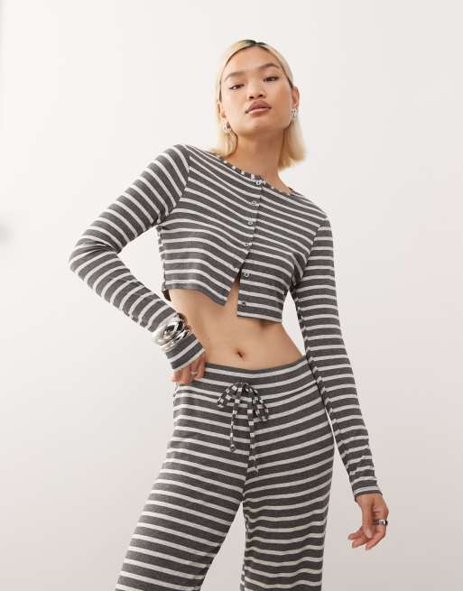COLLUSION – Grårandig, liten kofta i kort design, del av set