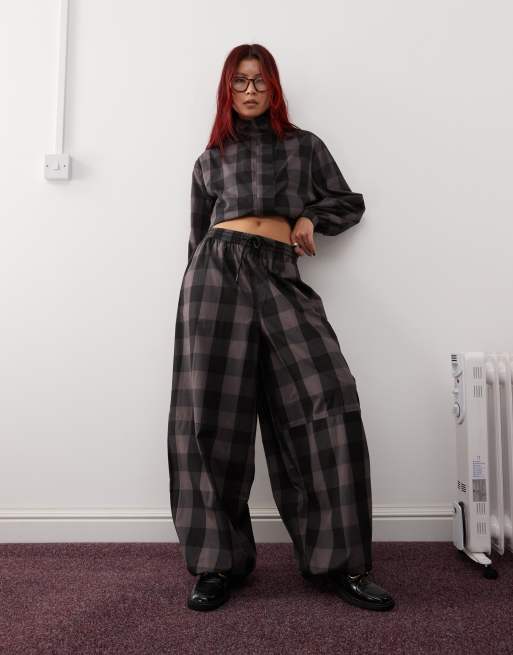 COLLUSION – Grårutiga byxor i baggy stil, del av set