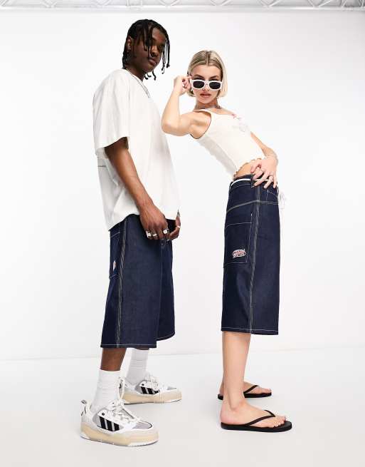 COLLUSION – Indigoblå cargoshorts i unisex-modell, skaterstil och denim med logga