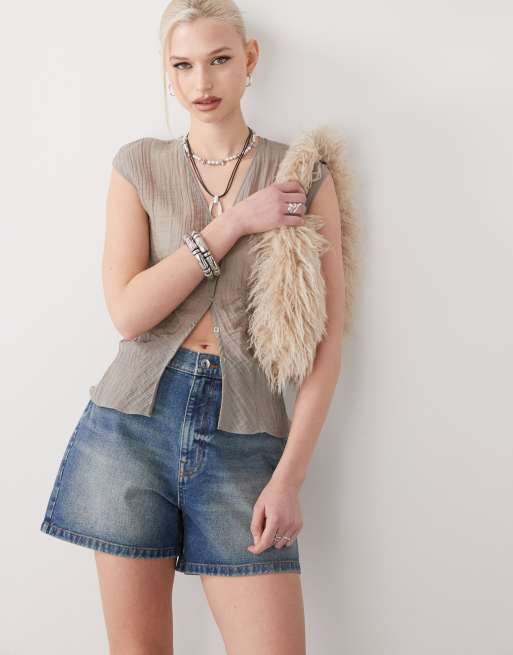 COLLUSION – Jeansshorts i mom-modell och mellanljus tvätt