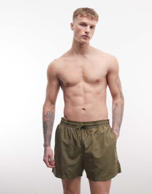 COLLUSION – Kakifärgade, mellanlånga badshorts