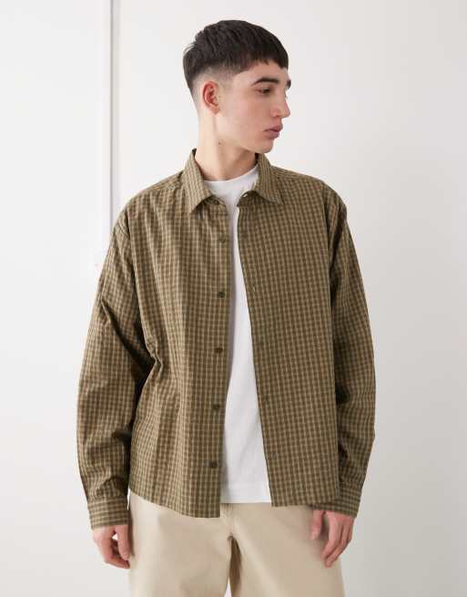 COLLUSION – Kakigrön, rutig skjorta med boxig passform och långa ärmar