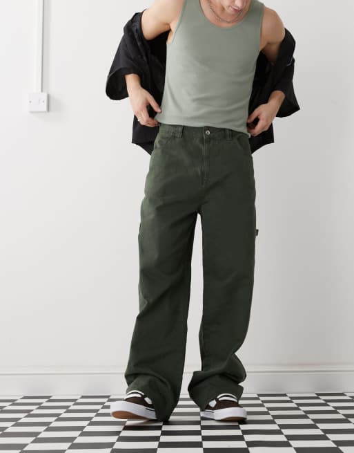 COLLUSION – Khakifärgade skaterbyxor med kontrastsömmar