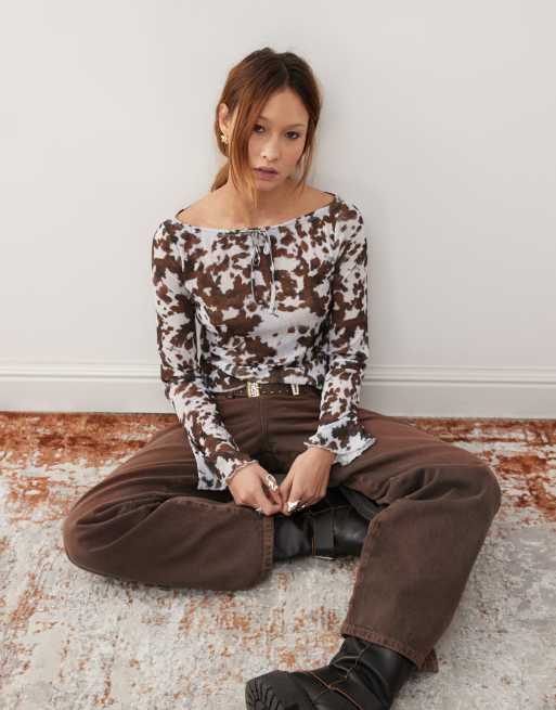 COLLUSION – Kohudsmönstrad off shoulder-topp i mesh