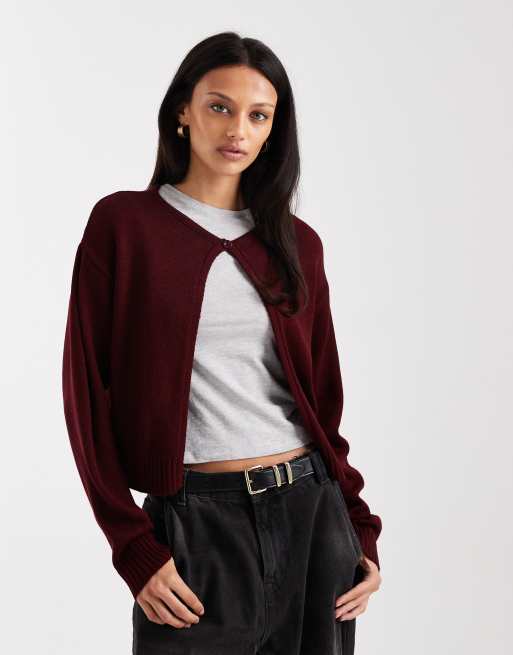 COLLUSION – Körsbärsröd, stickad, enkelknäppt kofta