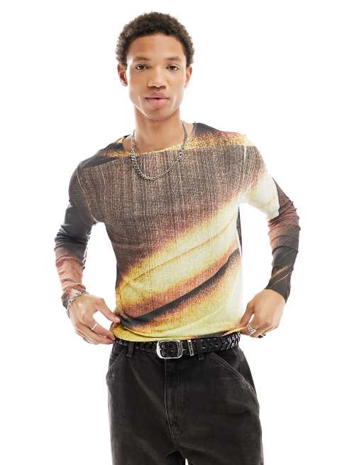 COLLUSION – Långärmad t-shirt i mesh med abstrakt mönster