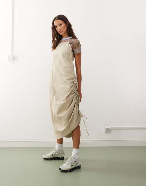 COLLUSION – Ljusbeige midiklänning med smala axelband och cargotvätt