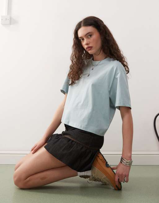COLLUSION – Ljusblå, boxig t-shirt med korta ärmar