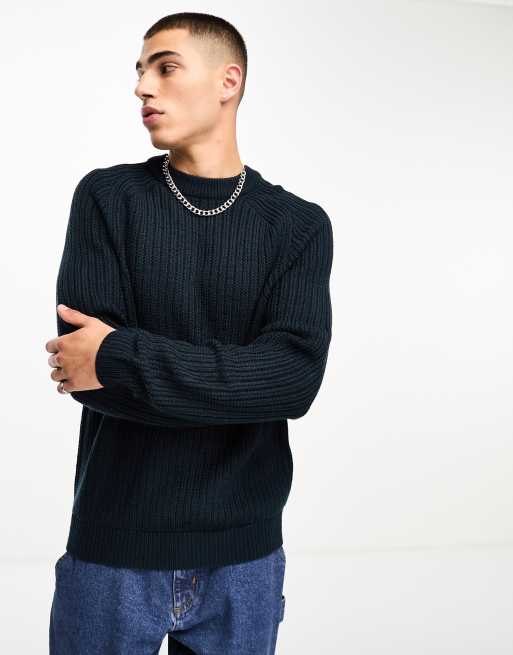 COLLUSION – Marinblå stickad tröja med rund halsringning