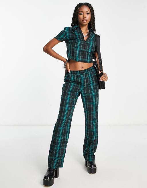 COLLUSION – Mörkgröna figursydda byxor med rutor, del av set
