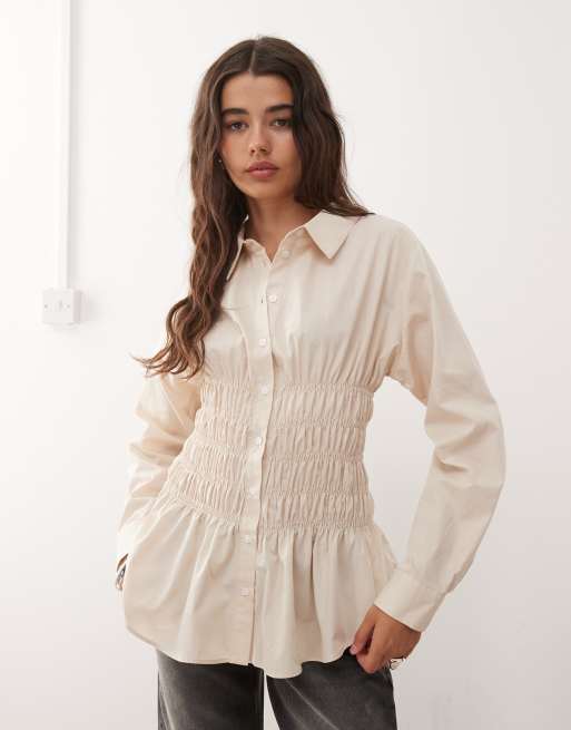 COLLUSION – Naturvit, smockad skjorta i oversize med långa ärmar