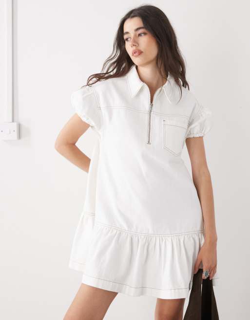 COLLUSION – Naturvit smockklänning i denim