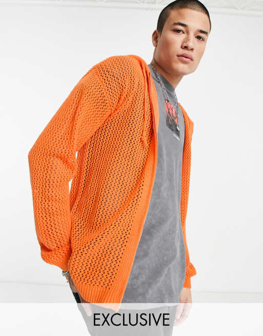 COLLUSION – Orange stickad huvtröja i mesh med dragkedja