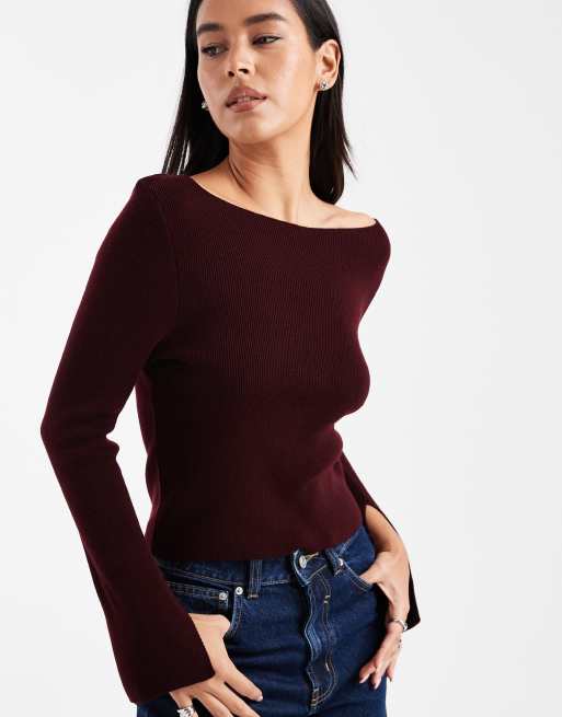 COLLUSION – Plommonlila, stickad topp med långa ärmar och båtringning