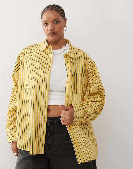 COLLUSION Plus – Gul, randig skjorta i linnemix och oversize