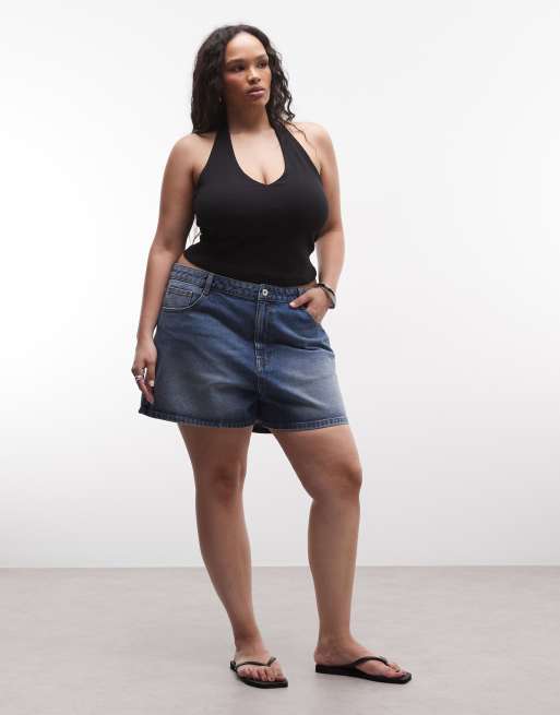 COLLUSION Plus – Mellanblå, tvättade shorts i mom-modell