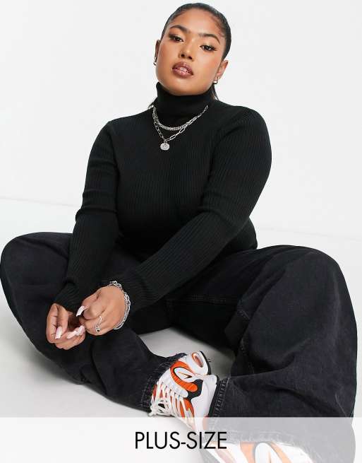 COLLUSION Plus – Svart ribbad tröja med polokrage