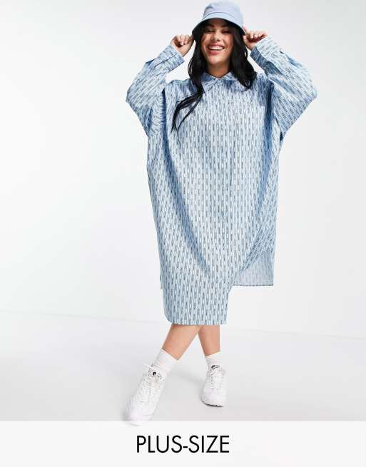 COLLUSION – Plusstorlek – Blå skjortklänning i oversize och midilängd med COLLUSION-ränder