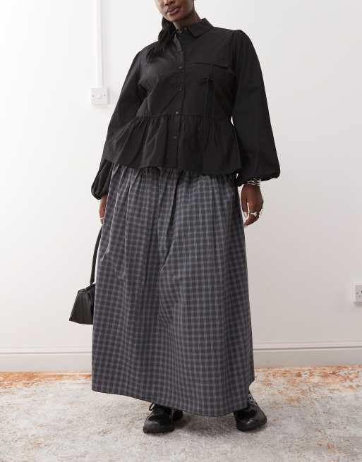 COLLUSION – Plusstorlek – Grårutig maxikjol med sänkt midja