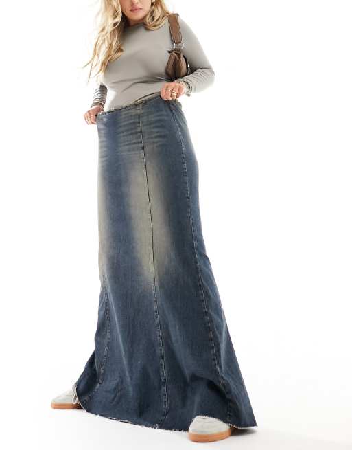 COLLUSION – Plusstorlek – Maxikjol i denim och fishtail-design med smutsigt tvättad finish