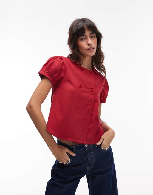 COLLUSION – Röd, figurnära skjorta i twill med holkärmar